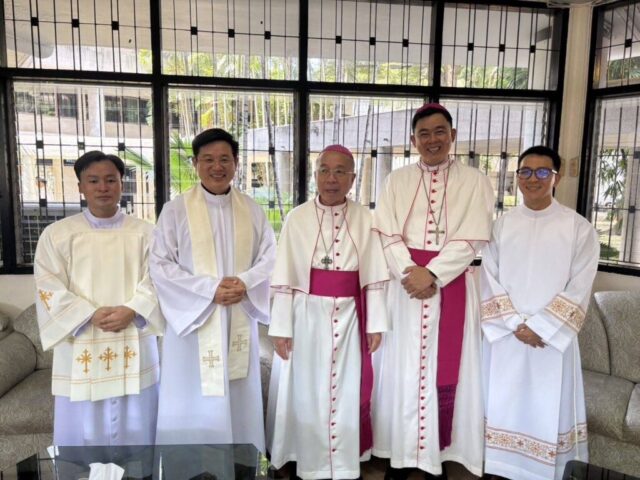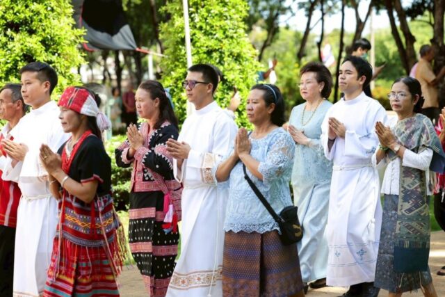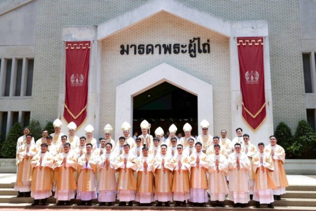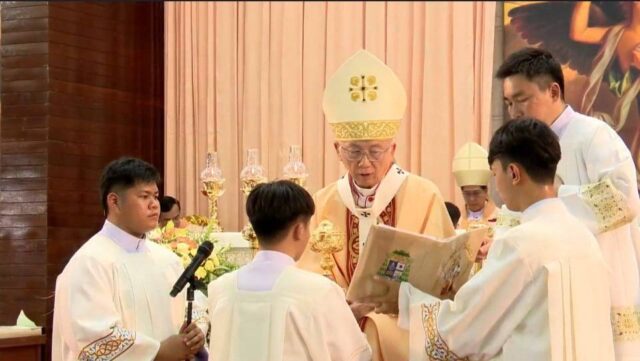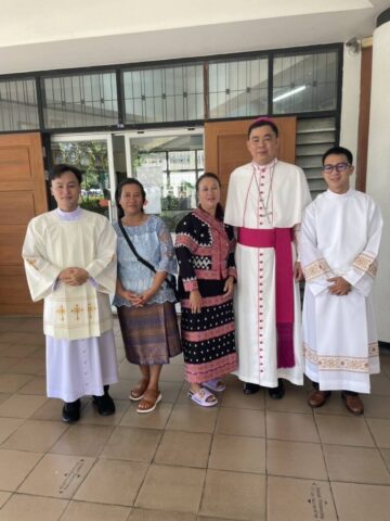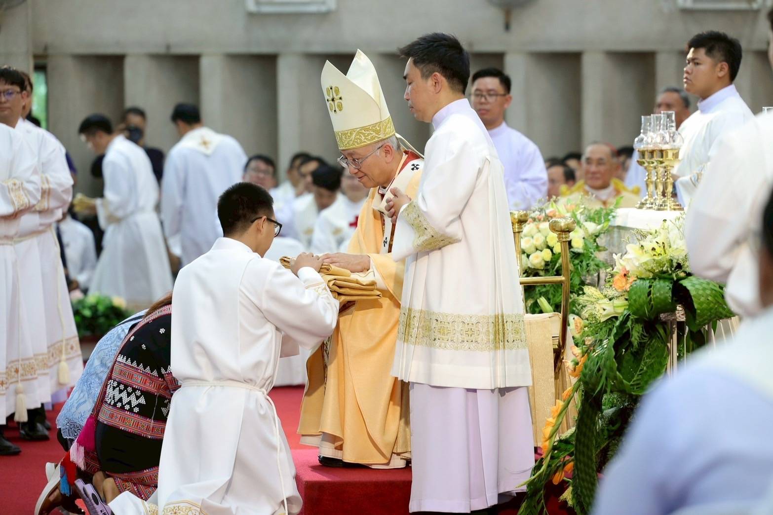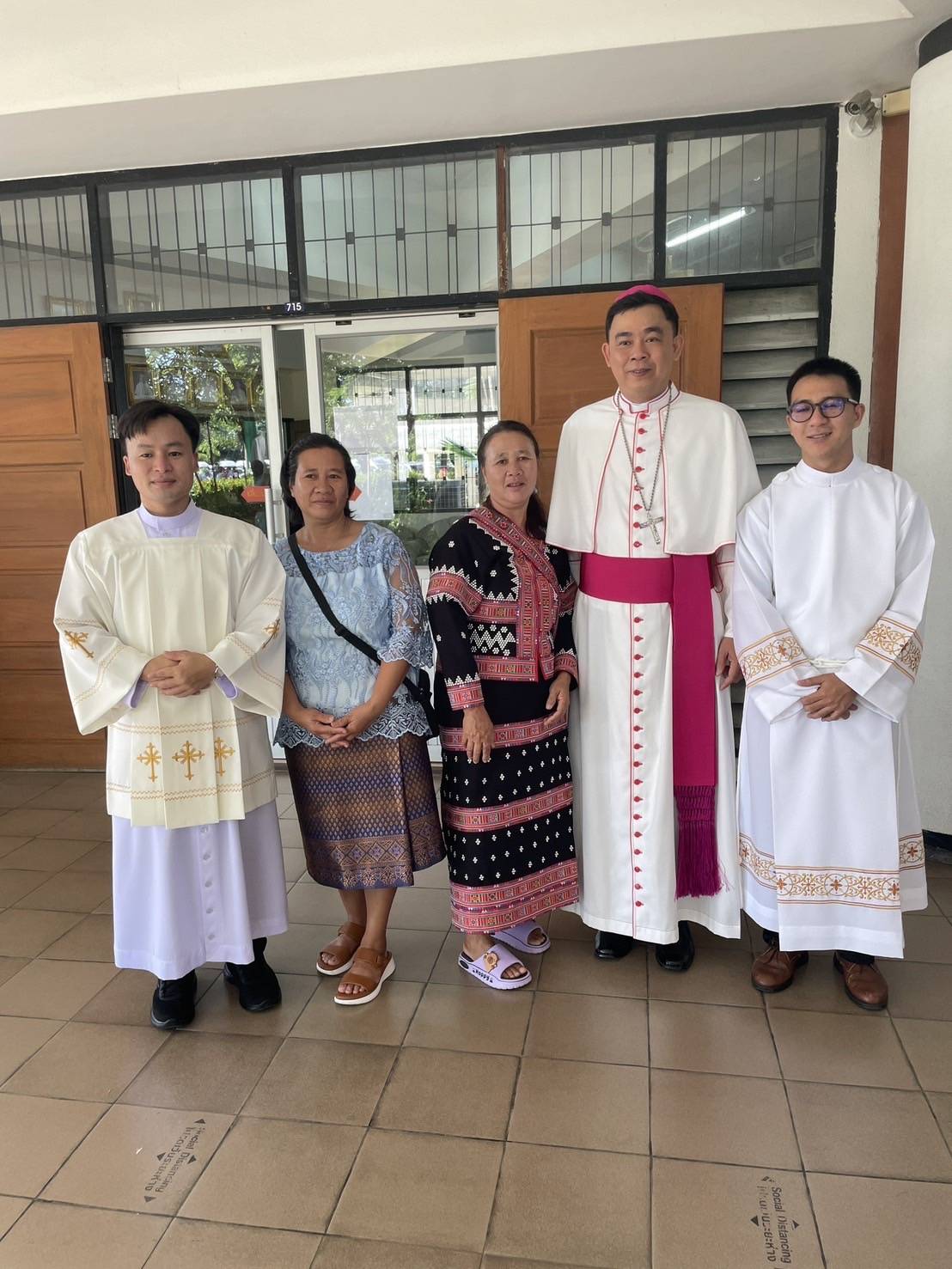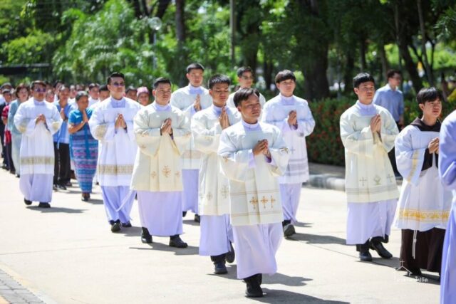 ภาพพิธีบวชสังฆานุกร และแต่งตั้งผู้ช่วยพิธีกรรมของ สามเณรสเตฟน พิรุณ แซ่จัง รับศีลบวชเป็นสังฆานุกร สามเณรเปโตร มอแล คะหล่า รับแต่งตั้งเป็นผู้ช่วยพิธีกรรม โดยพระอัครสังฆราชฟรังซิสเซเวียร์ วีระ อาภรณ์รัตน์ ประมุขอัครสังฆมณฑลกรุงเทพ วันเสาร์ที่ 9 สิงหาคม ค.ศ. 2025 เวลา 10:00 น. ณ อาคารพระมารดาพระผู้ไถ่ บ้านเณรใหญ่แสงธรรม