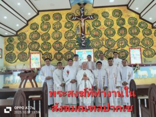 ระหว่างวันที่ 6-10 ตุลาคม 2025 พระสงฆ์ที่ทำงานในประเทศน์ลาว ทั้งพระสงฆ์พื้นเมืองจากสี่สังฆมณฑลและพระสงฆ์จากคณะนักบวชที่ทำงานในสังฆมณฑลต่างๆในสี่สังฆมณฑล มีการเข้าเงียบและพบปะกันเพื่อแลกเปลี่ยนประสบการณ์ในการทำงานอภิบาลตามสังฆมณฑลต่างๆ โดยในะหว่างวันที่ 7-8 ตุลาคม ได้รับเกียรติจากพระอัครสังฆราช หลุยส์ จำเนียร สันติสุขนิรันดร์ พระอัครสังฆราชกิตติคุณของอัครสังฆมณฑลท่าแร่-หนองแสง ได้ให้เกียรติมาเทศน์แบ่งปันให้กับพระสงฆ์ทั่วประเทศลาวในครั้งนี้ พร้อมทั้งให้คำแนะนำและคำตักเตือนในการเป็นพระสงฆ์ที่ดี ที่ศักดิ์สิทธิ์ตามแบบอย่างขององค์พระเยซูคริสตเจ้าให้กับพระสงฆ์ทั่วประเทศลาวในครั้งนี้ด้วย ขอกราบขอบพระคุณพระคุณเป็นอย่างสูงที่ได้เสียสละเวลาอันมีค่าของพระคุณเจ้ามาแบ่งปันให้กับพระสงฆ์ทั่วประเทศลาวประจำปี ค.ศ.2025 นี้. Alter Christus!!!!