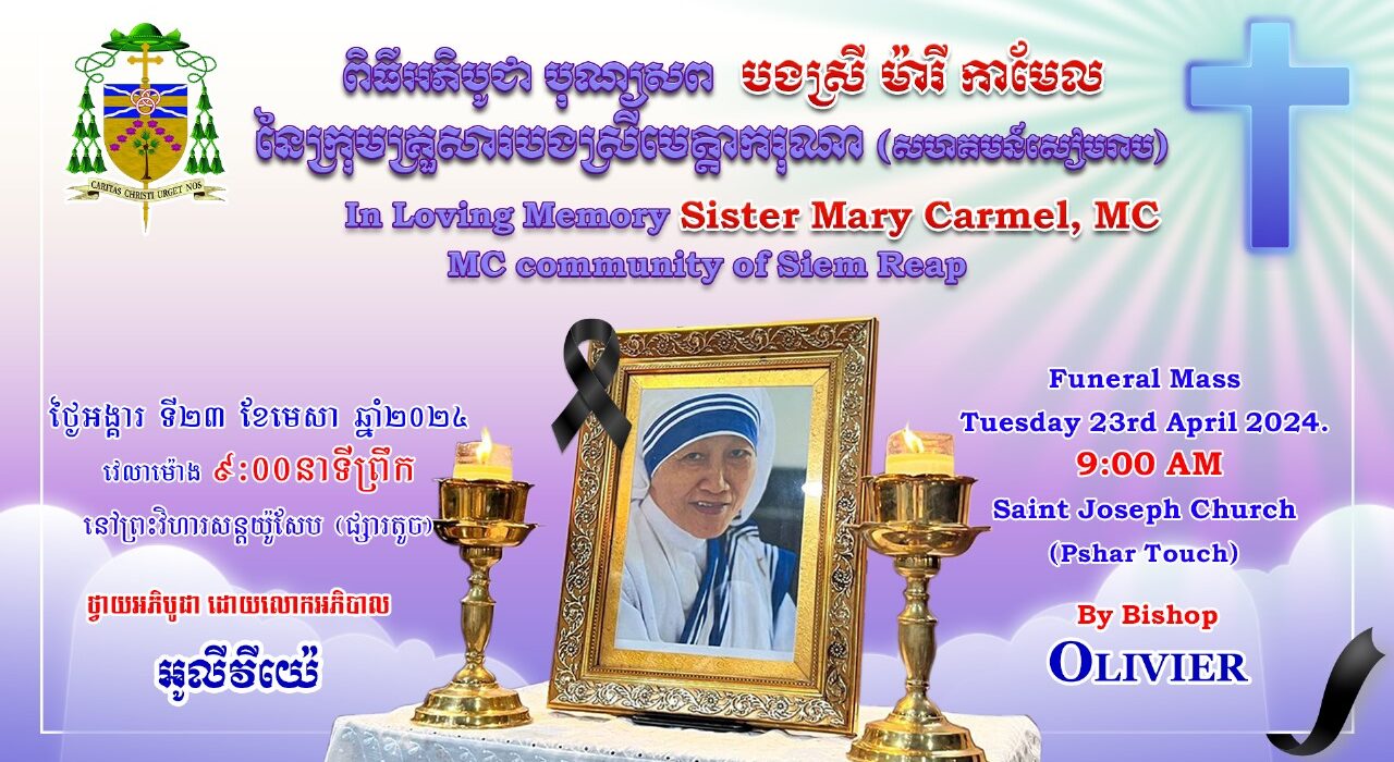 สวัสดีครับพี่น้องในเดือนเมษายน…อันเป็นเดือนที่อุณหภูมิสูงจนทุบสถิติ ในเช้าวันศุกร์(12/4/24) ขณะที่ผมกำลังเตรียมไปถวายมิสซาตามปกติที่ บ้านของคณะซิสเตอร์ธรรมทูตเมตตาธรรม บนถนนหลักของกรุงพนมเปญ คือ ถนนพระมุนีวงษ์ จนเรามักเรียกซิสเตอร์จากที่นี่ว่า “ซิสเตอร์มุนีวงษ์” เป็นบ้านที่สมเด็จฮุนเซนได้เชิญคณะซิสเตอร์มาทำงานด้านกิจเมตตาธรรม และได้บริจาคให้ใช้งานมาตั้งแต่เปิดประเทศ เป็นบ้านรับเด็กเล็ก ที่ถูกทอดทิ้ง มีปัญหาครอบครัว ฯลฯ… ผมได้รับข้อความว่า ช่วงเช้ามืด ในห้องนอนธรรมดาอันอบอ้าวของคณะซิสเตอร์ธรรมทูตเมตตาธรรม มีซิสเตอร์ท่านหนึ่ง ได้หมดลมหายใจไปอย่างสงบ…